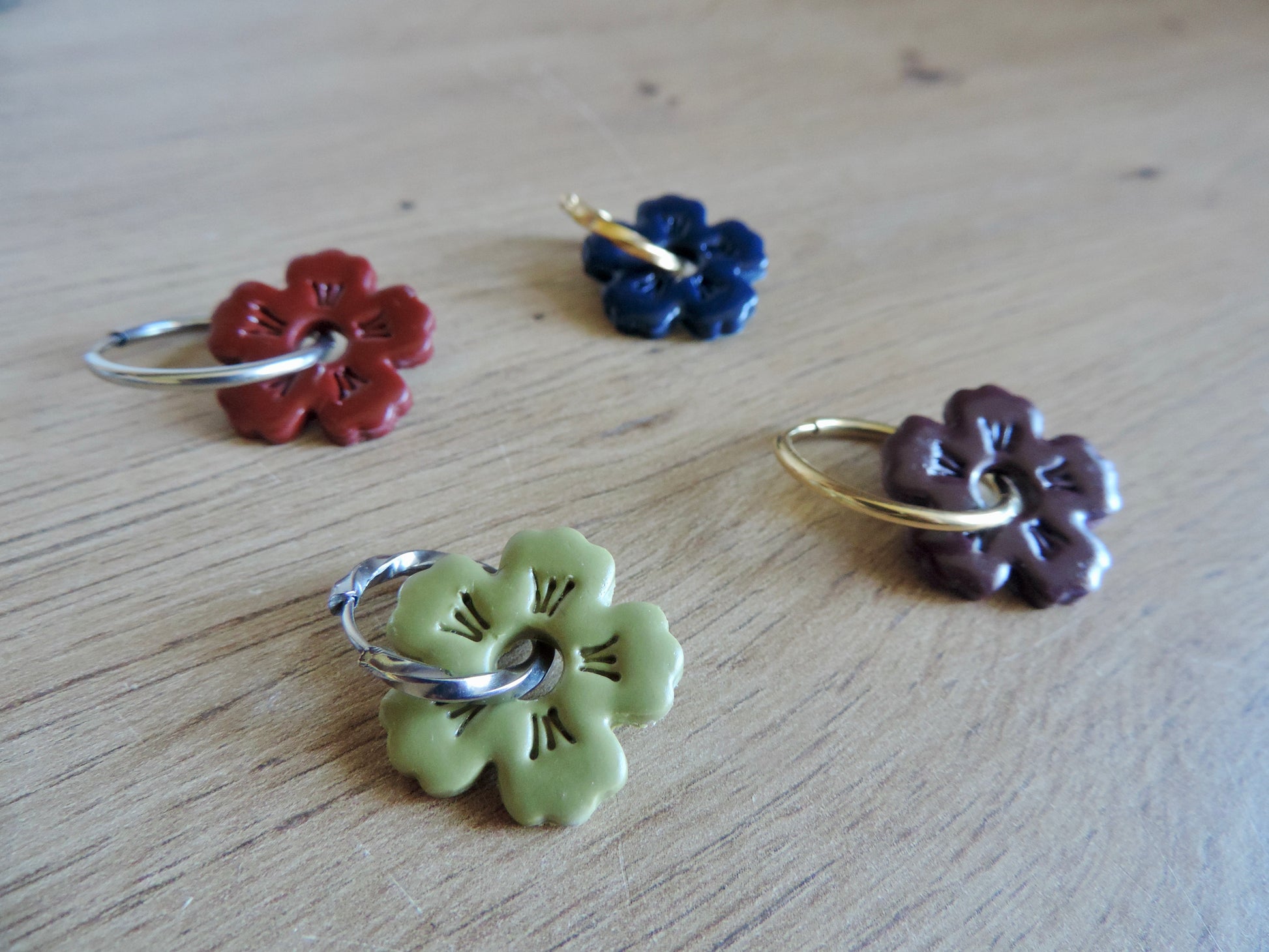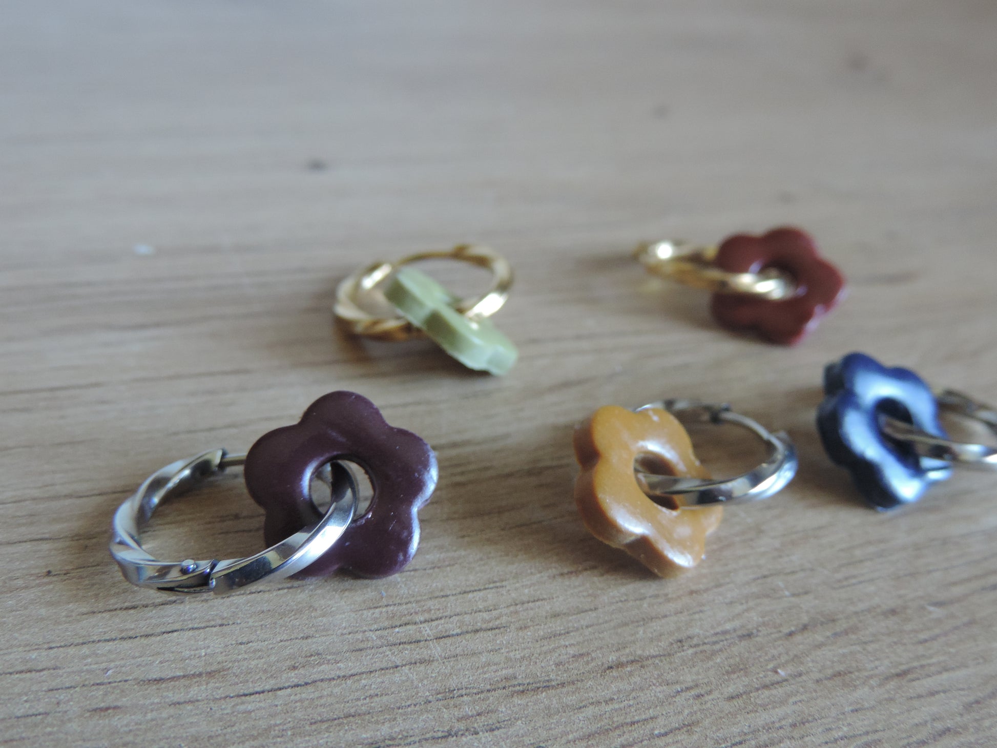 Créoles en acier inoxydable idéales avec les pampilles en pâte polymère.