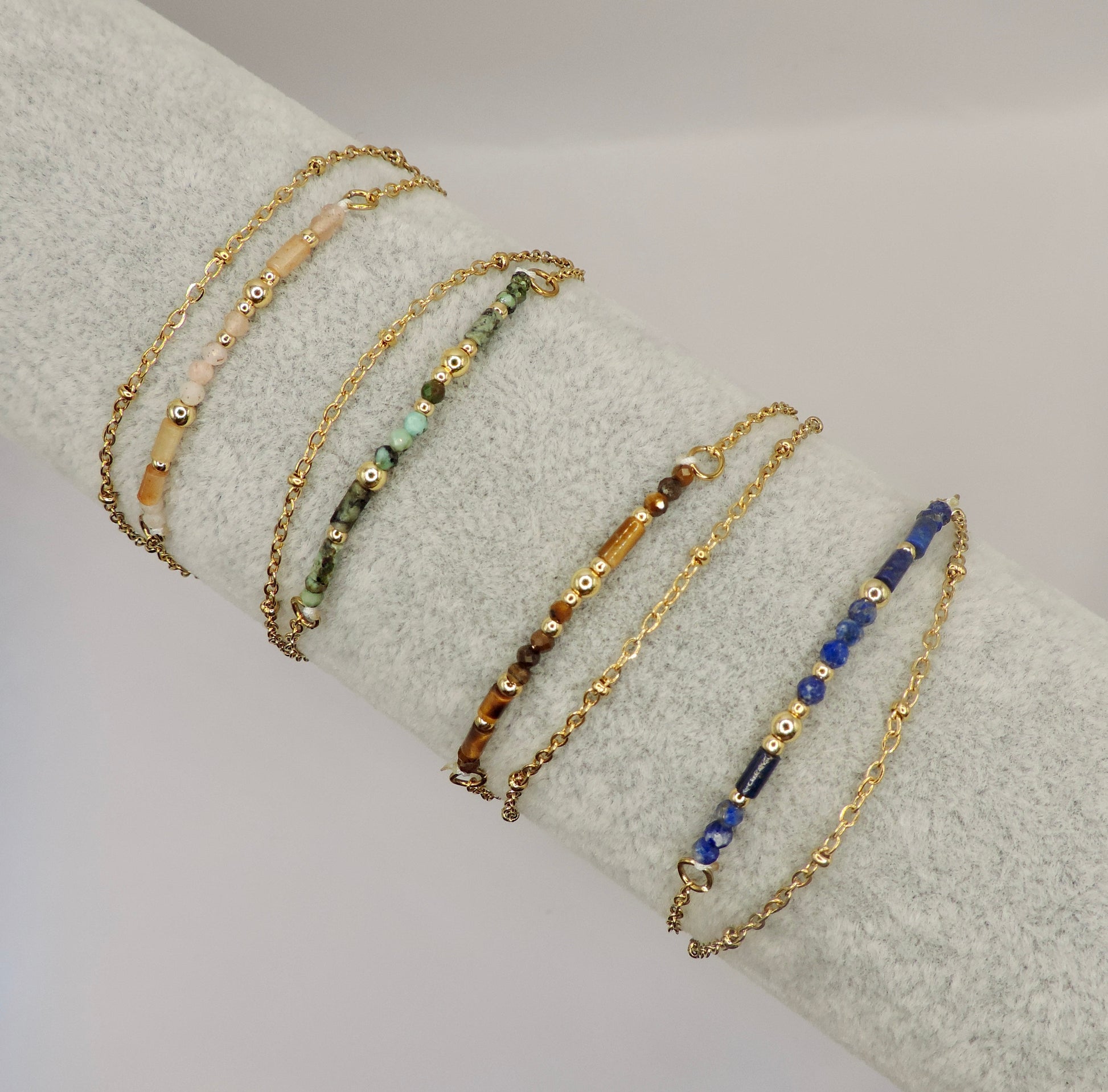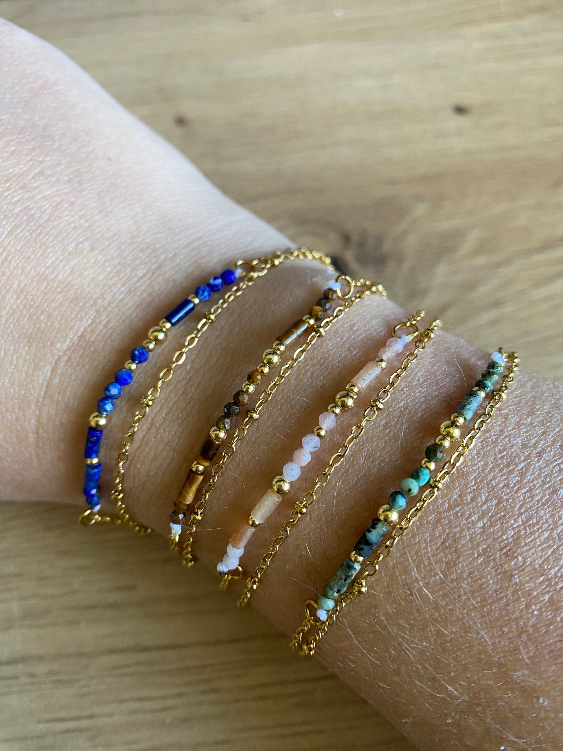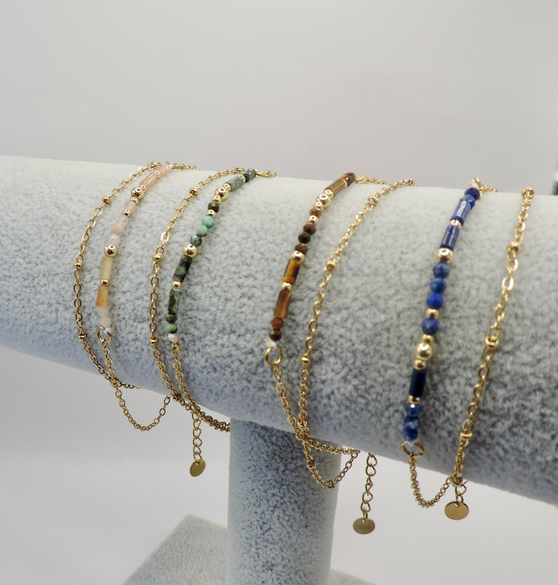 1 rang avec perles et un autre avec une chaîne en acier inoxydable